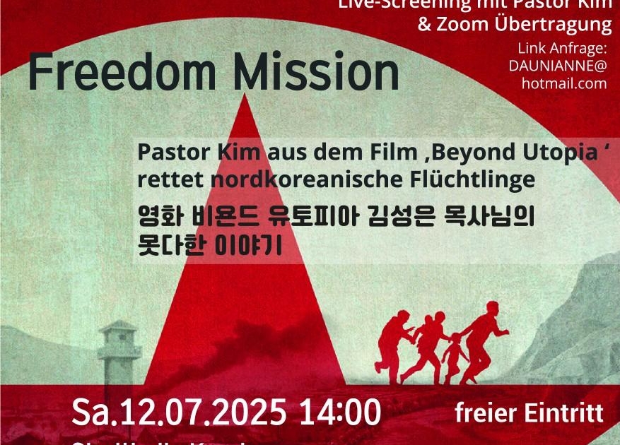 Der DKG Landesverband Hessen/Rheinland-Pfalz lädt, zusammen mit PUAC Northern Europe Chapter Frankfurt Branch, herzlich ein zur virtuellen Veranstaltung mit Pastor Kim, Hauptakteur aus dem Film Beyond Utopia.